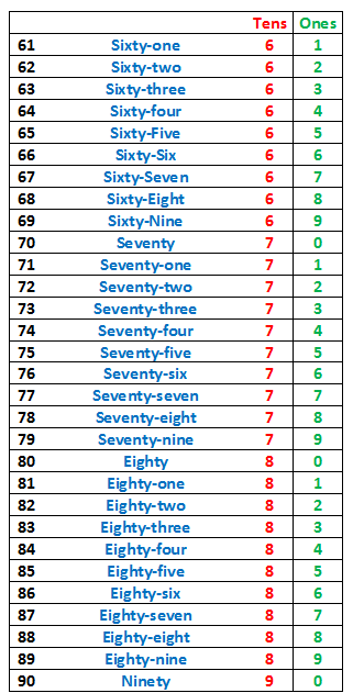 90 = 90 (Ninety) = 9 tens 0 ones