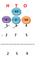Now, subtract 7 Tens from 2 Tens , but the same problem arise, i.e. 2 ‘Tens’ < 7 ‘Tens’.