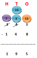 Step 3. – In Step2. We have placed/added 1 before 3 ‘Tens’ and now to balance subtract 1 from 3 ‘Hundreds’ and the number stands at 2 ‘Hundreds’.