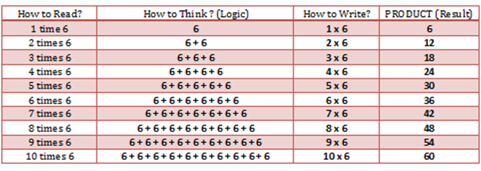 1 time 6 is = 1 x 6 = 6 (Six)