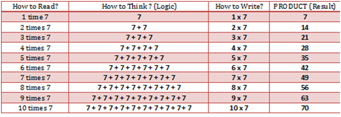 1 time 7 is = 1 x 7 = 7 (Seven)