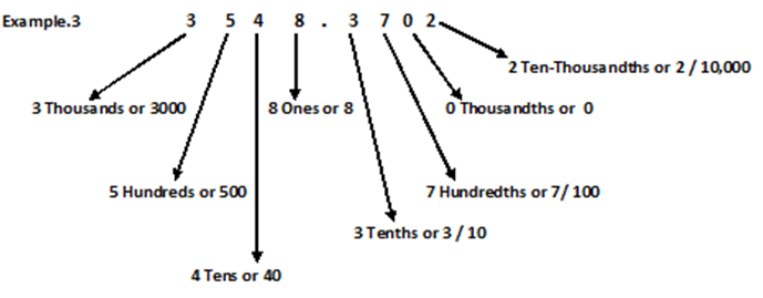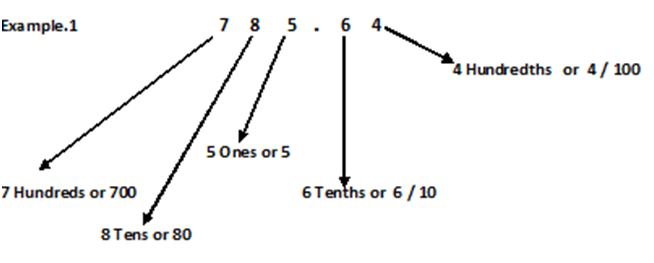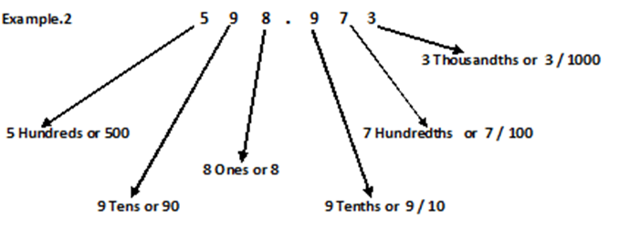 Decimal number consist of two part, one is 1) Whole number part and another is 2) Decimal part, to read and write the decimal the whole number part is read like as normal number or as usual as per the place value of the number and the Decimal part is to be read and write as if it were a whole number, but the name of the place of last digit on the right is attached to the number. The word ‘AND’ is used for the decimal points.