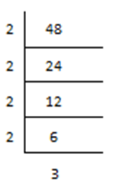 Suppose we have 48, we have to find the factorization via divide method-