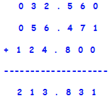 32.56 = 032.560 , 56.471 = 056.471 and 124.8 = 124.800