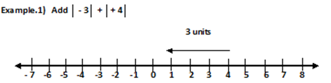 To add a negative integer to a given integer, move to the left of the given integer by as many unit distance as the absolute value of the integers to be added. From (+4) we move to 3 unit to the left and arrival at 1.