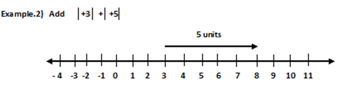 Add a positive integer to a given integer, move to the right of the given integer by as many unit distances as the absolute value of the integer to be added. From (+3) we move 5 units to the right and arrive at 8.