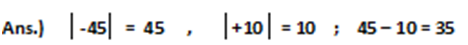 (-45) + (+10) = -45 + 10 = -35 (Ans.)