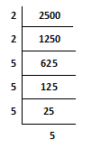 So, 2500 = 2 X 2 X 5 X 5 X 5 X 5