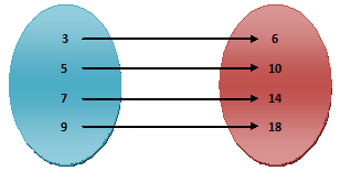We can write f(3) = 6, similarly f(5) = 10, f(7) = 14, and f(9) = 18. In other words the images of 3, 5, 7 & 9 are 6, 10, 14, & 18 respectively. We can represent f in the roster form as –