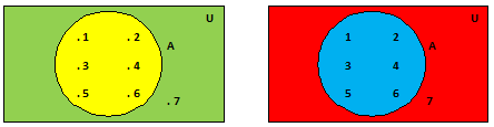 Example.- The set A = { 1, 2, 3, 4, 5, 6 } can be represented by either of the two diagrams shown, here 7 ∉ A