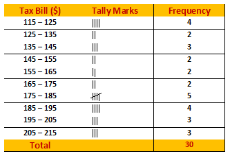 Example) The house tax bills (in dollar $) of 30 houses in a locality are given below –
