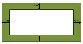 As you can find from the above picture, in length there is = 4 m + 4 m = 8 m more length to be added in given length, and in breadth also there is = 4 m + 4 m = 8 m more breadth is to be added in the given breadth size.