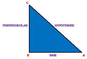 Base = AB, Perpendicular = BC, and Hypotenuse = AC. The T-ratios for ∠A are defined as –