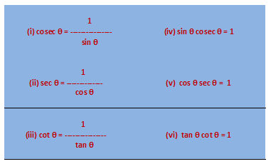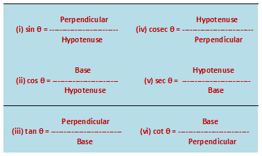Thus, the six trigonometrical ratios for an acute angle θ of a right triangle can be defined as –