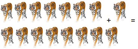 In above picture we can observe that, 7 no.s tiger has been added with one tiger and now the obtained or the result of addition would be 7 + 1 = 8 tigers (just next number of 7).