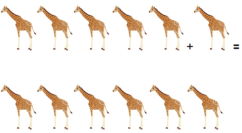 In above picture we can observe that, 5 no.s giraffe has been added with one giraffe and now the obtained or the result of addition would be 5 + 1 = 6 giraffe (just next number of 5).