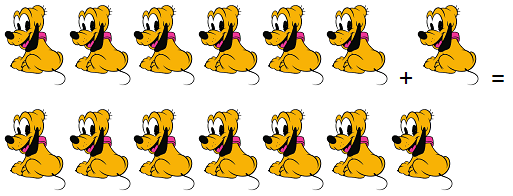 In above picture we can observe that, 6 no.s puppies has been added with one puppy and now the obtained or the result of addition would be 6 + 1 = 7 puppies (just next number of 6).