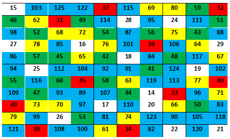 If a box shows a number a number less than 30, colour the box white, and the number above 40 then colour the box green, and the number above 60 then colour the box yellow, and the number above 80 then colour the box blue, and rest the box put colour red. -