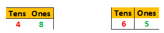 tens place is bigger. 6 is bigger than 4, so 65 is bigger than 48.