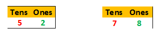 tens place is bigger. 7 is bigger than 5, so 78 is bigger than 52.