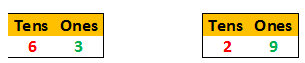 tens place is bigger. 6 is bigger than 2, so 63 is bigger than 29.