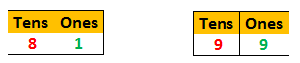 tens place is bigger. 9 is bigger than 8, so 99 is bigger than 81.