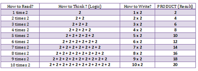 In above picture logic has been shown that 2 repeatedly has been added, and multiplication or Table of 2 showing that number 2 how many times has been shown and added that reflex into - how many times taken 2 X multiplication of number.