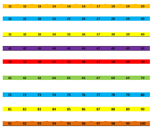 From the above number strip we can observe that, each and every strip contains some group of numbers which has been highlighted by different color back ground.