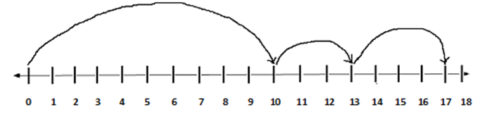 METHOD OF SOLUTION- Start count from ‘0’ and jump to ‘10‘th position first, then start jump from (Tenth) ‘10’th position to next 3 more jumps and again start jump to next 4 more positions and reach to ‘17‘ th positions. So, 10 + 3 + 4 = 17 (Answer) chocolate bars now you have.