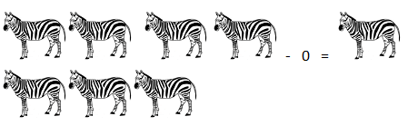In above picture zero ‘0’ has been subtracted from four zebra, subtraction of zero means nothing has been subtracted or reduced, so the obtained number of object remains the same with number which is four zebra.