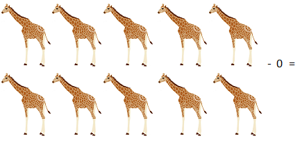 In above picture zero ‘0’ has been subtracted with five giraffe, subtraction of zero means nothing has been subtracted or reduced, so the obtained number of object remain the same as given number of giraffe which is five giraffe.
