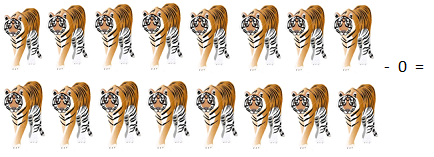 In above picture zero ‘0’ has been subtracted from eight tigers, subtraction of zero means nothing has been subtracted or reduced from the given number of object, so the obtained number of object remain the same as the given number of object which is eight tigers.