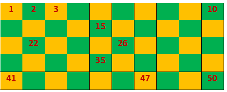 From the above table we can observe that, there are some numbers are given up to 50 such as 1, 2, 3,10, 15, 22, 26, 35, 41, 47, 50. Now as per the given condition we have to find out the numbers between the given numbers.