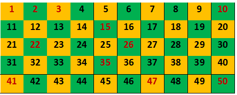 There are some numbers are given above the table up to 50, where rest of the numbers are missing, so we have to find out other numbers which are not present in number table -