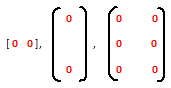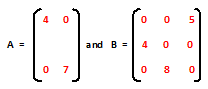 are zero matrices of order (1 X 2), (2 X 1), and (3 X 2) respectively.