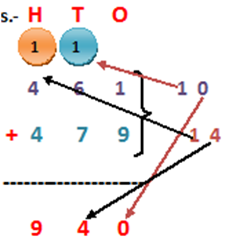Write 4 in the ‘Tens’ column and take 1 To the ‘Hundred’ column.