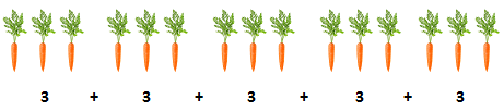 From above picture we can create the equation, such as 3 carrots multiply 5 times which is to be called multiply 5 by 3.