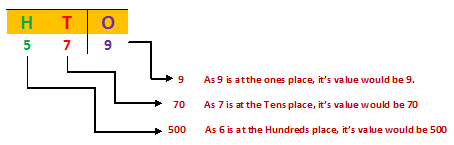 Let us look at another number which is supposed to be 579, and now we will find the place values of the digits, it is made up of.