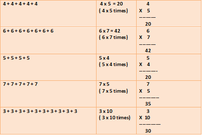 1) 5 x 6 = 30 6) 5 x 9 = 45