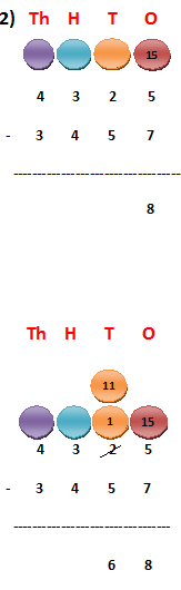 Step.4 – In Step 3. We have placed/added 1 before 3 ‘Hundreds’ and now to balance subtract 1 from 7 ‘Thousands’ and the number stands at 6 ‘Thousands’. Now, subtract 4 ‘Thousands’ from 6 ‘Thousands’.