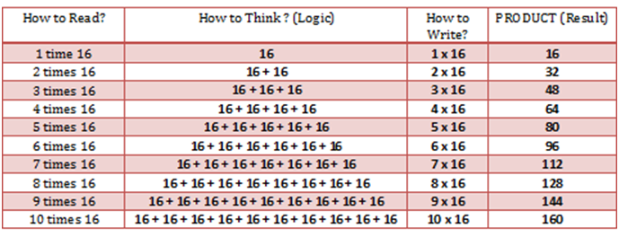1 time 16 is = 1 x 16 = 16 (Sixteen)