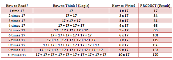 1 time 17 is = 1 x 17 = 17 (Seventeen)