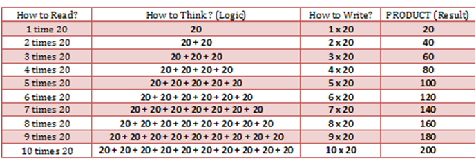 5 times 20 are = 5 x 20 = 100 (One Hundred)