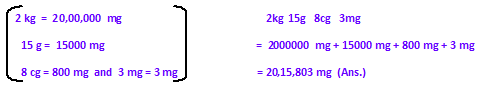 Ans.) Before solving the problem first read the problem sum very carefully. From the problem you can find, the entire problem should be converted into the ‘Centigram(cg)’ unit.