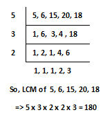 Step.1) Find the LCM of the ‘Denominator’ of the given fraction 5, 6, 15, 20, 18.