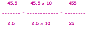 Ans.) We have to divide 45.5 by 2.5, so 45.5 ÷ 2.5 = ?