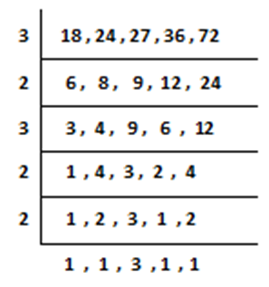 Step.3) Repeat the above process till no two of the given numbers are Divisible by same number other than 1.