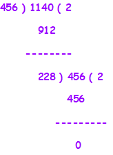 Step.1– We divide 1140 by 456 and find the reminder 228.
