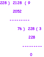 Step.4 – We will consider reminder 76 as divisor and previous divisor 228 is considered as dividend and we found Zero ‘0’ as a reminder.