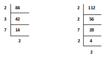 84 = 2 X 3 X 7 X 2 112 = 2 X 2 X 7 X 2 X 2